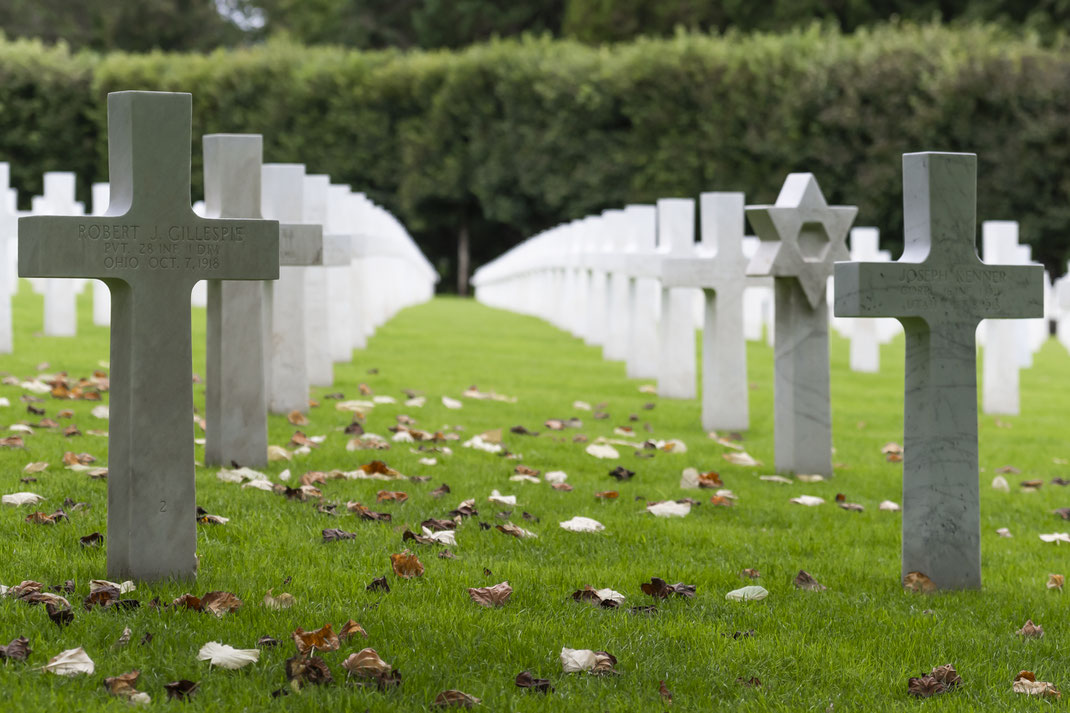 Heute ruhen über 14.000 amerikanische Soldaten auf den sanft abfallenden Rasenflächen des Friedhofs. Lange Reihen aus weißen Marmorkreuzen und Davidsternen ziehen sich bis zum Horizont, viele davon über Gräbern unbekannter Gefallener. Im Zentrum erhebt sich eine romanische Kapelle mit Buntglasfenstern, die die Abzeichen der Divisionen tragen, die hier gekämpft haben. An ihren Wänden sind die Namen von fast tausend Soldaten eingraviert, deren Leichen niemals gefunden wurden.